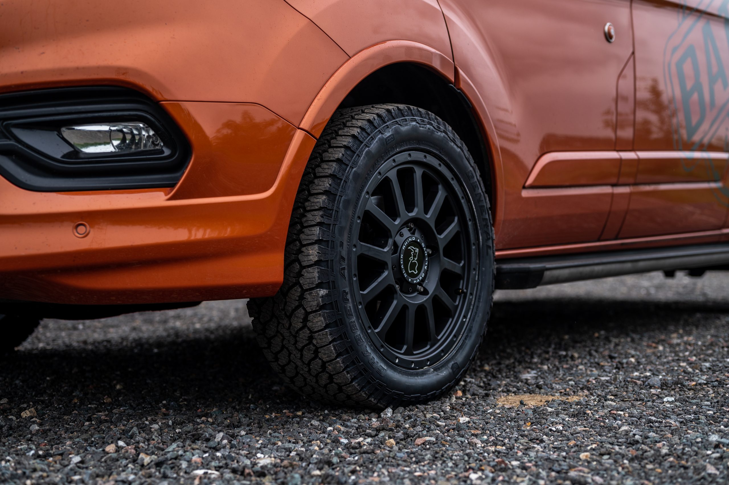 Mit einer Höherlegung von SPACCER und schicken Felgen, den HAVASU 17″ von Black Rhino, sieht unser Ford Transit Custom schon richtig gut aus! Als A/T-Reifen sind übrigens General Grabber AT³ verbaut.